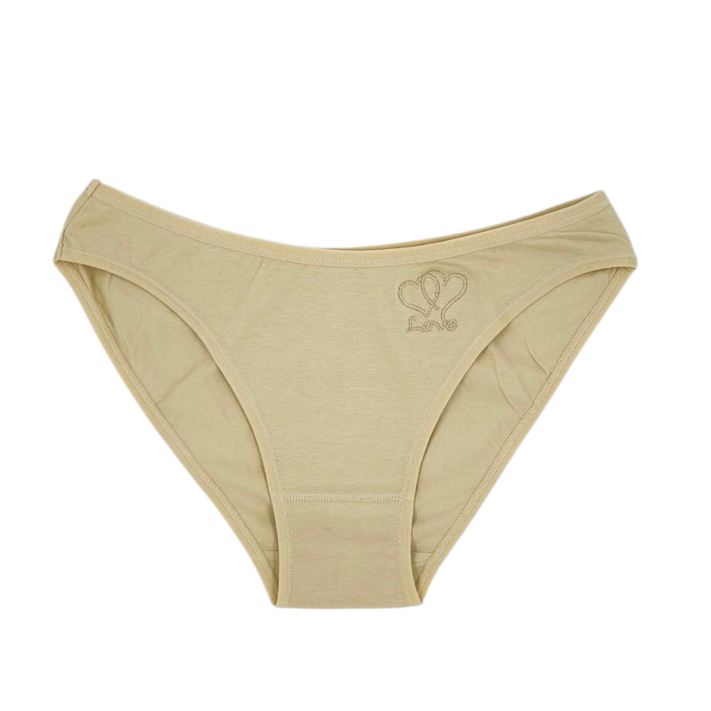 BR057 – Γυναικείο Βαμβακερό Σλιπ Κλασικό Μπεζ με Κέντημα Love