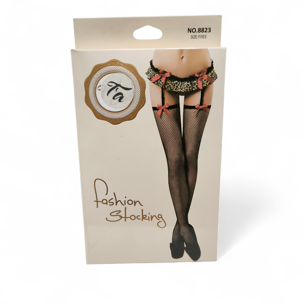 KL005 – Διχτυωτό Καλσόν με Ζαρτιέρα & Φιόγκους – Sexy Leopard Lingerie