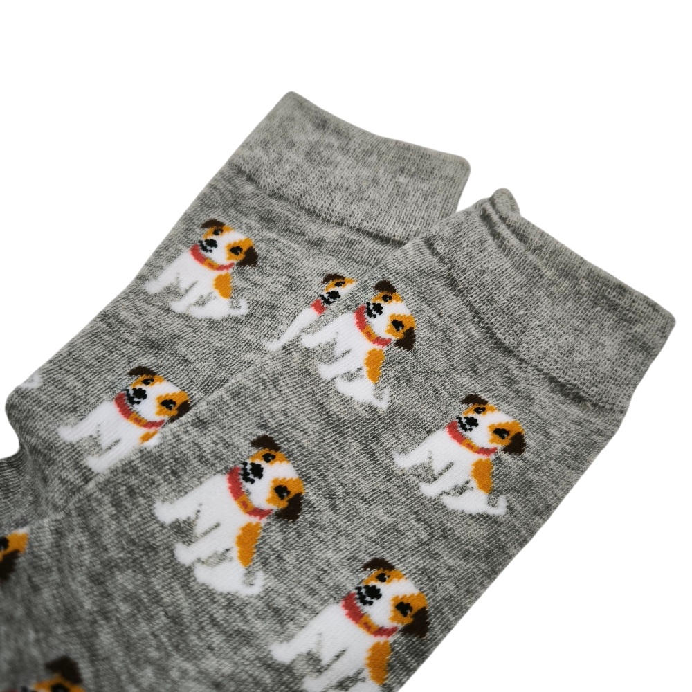 Παιδική κάλτσα σε γκρι χρώμα με χαριτωμένο σχέδιο σκυλάκι. Μαλακή και άνετη, ιδανική για καθημερινή χρήση στο σχολείο ή στο σπίτι. Κατασκευασμένη από βαμβάκι με ελαστικότητα, ώστε να εφαρμόζει σωστά χωρίς να πιέζει. Μαλακές, άνετες και ανθεκτικές για καθημερινή χρήση.