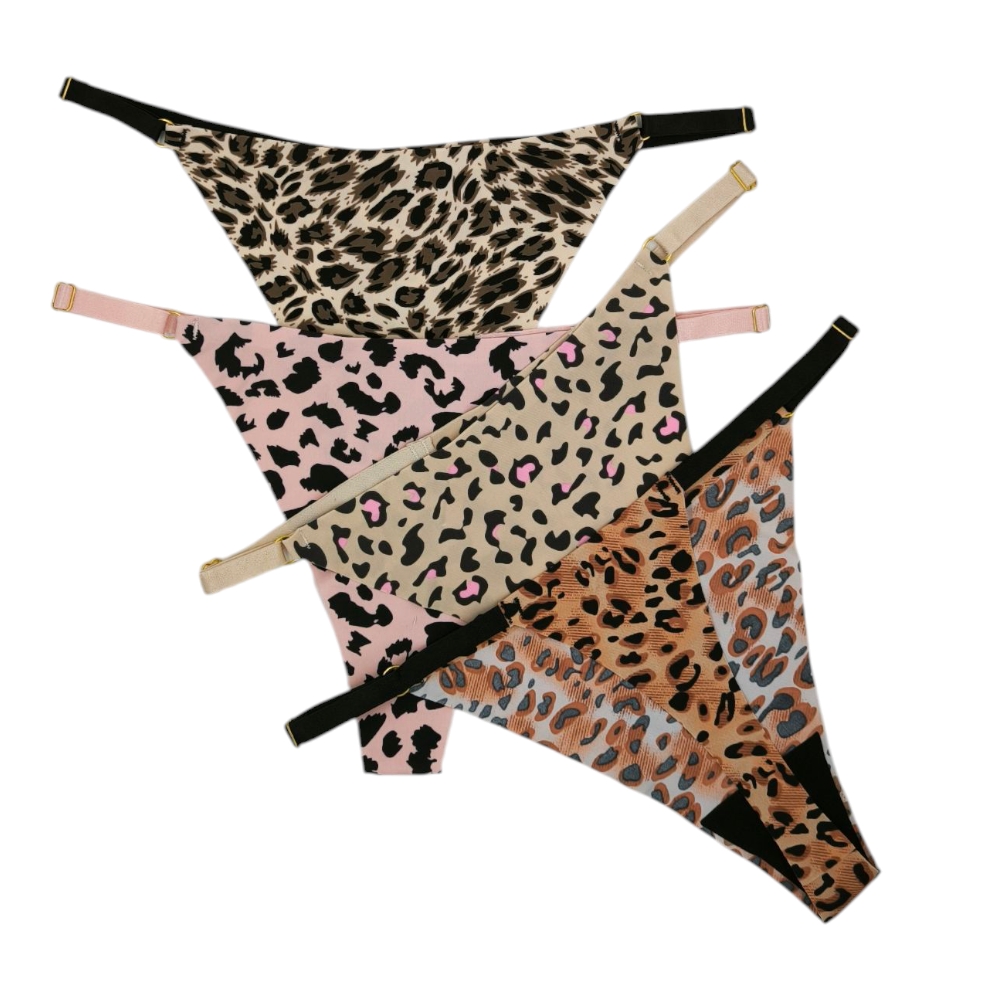 Ανακαλύψτε το πιο τολμηρό και σέξι εσώρουχο της συλλογής! Το string με animal print υπόσχεται άνεση και στυλ, συνδυάζοντας παιχνιδιάρικη διάθεση με απόλυτη εφαρμογή. Επιλέξτε το σχέδιο που ταιριάζει στην προσωπικότητά σας και ξεχωρίστε κάθε στιγμή!
