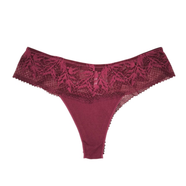 Αναβάθμισε τη συλλογή σου με αυτό το εντυπωσιακό γυναικείο brazilian plus size σε κομψό μπορντό χρώμα. Κατασκευασμένο από απαλό ύφασμα με ελαστικότητα και διακοσμημένο με φλοράλ δαντέλα στη μέση και στο πίσω μέρος, προσφέρει θηλυκότητα και άνεση σε κάθε εμφάνιση.